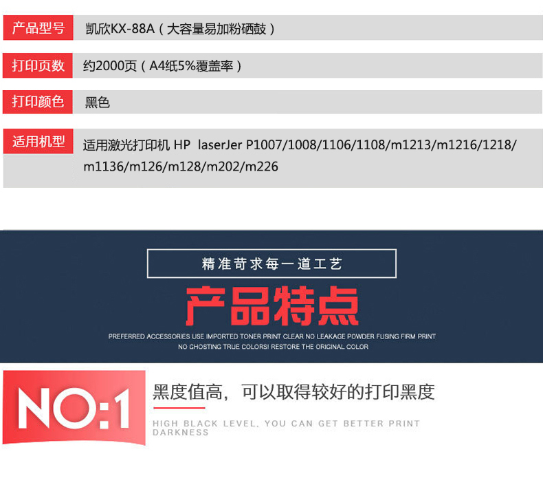 凱欣政企版 KX-CC388A 硒鼓 適用惠普m1136 CC388A HP1108 p1106 1007 p1008 388a m1213nf 1216nfh墨盒 全國(guó)統(tǒng)一價(jià):126元