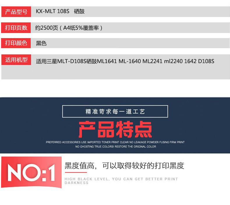 凱欣標(biāo)準(zhǔn)版 KX-MLT108S粉盒 適用三星MLT-D108S硒鼓ML1641 ML-1640 ML2241激光打印機(jī)墨盒ml2240 全國統(tǒng)一價(jià):156元